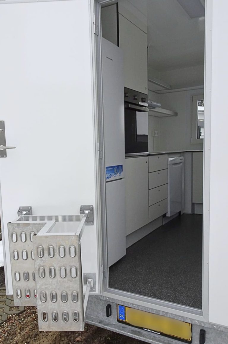 Onze mobiele keuken beschikt over alles wat je nodig hebt om efficiënt en hygiënisch te koken, zelfs op tijdelijke locaties: